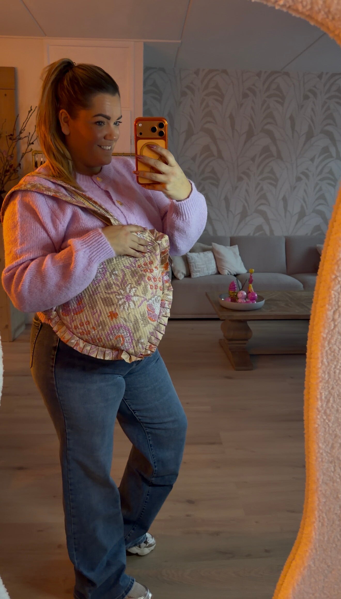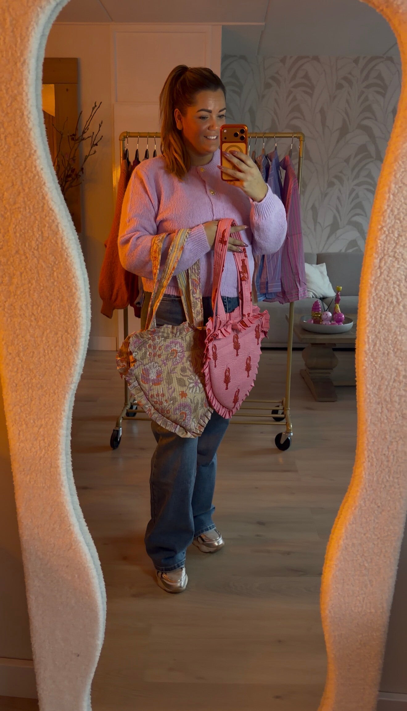 Deze tas biedt genoeg ruimte voor al je essentials en geeft je look direct die gewenste "wow-factor". Zoals je op de foto ziet, matcht hij ook nog eens fantastisch bij onze gebreide vesten!
