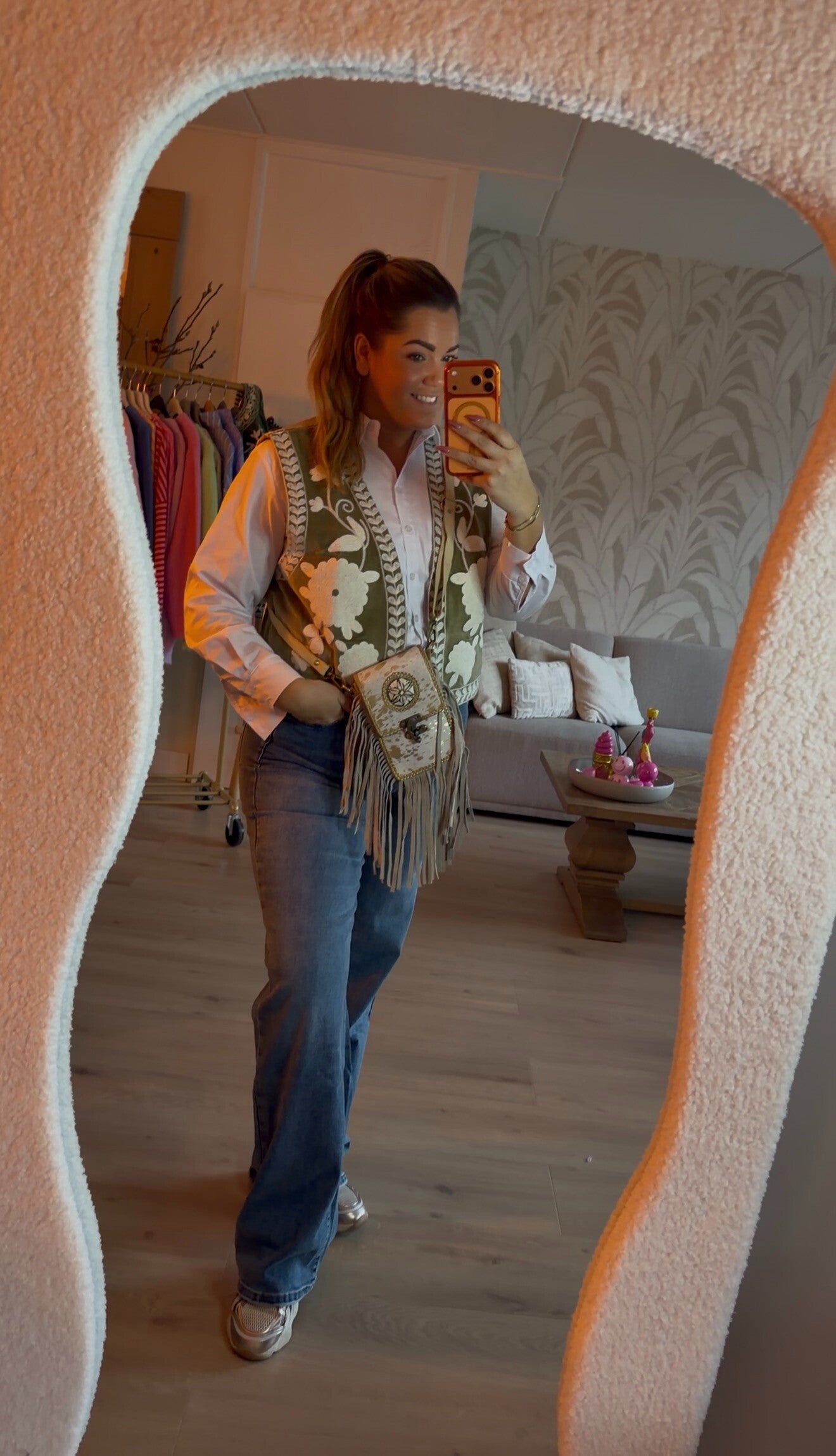 De Finishing Touch: Maak je set compleet met onze populaire fringe-telefoontasjes/crossbody bags – praktisch én trendy.