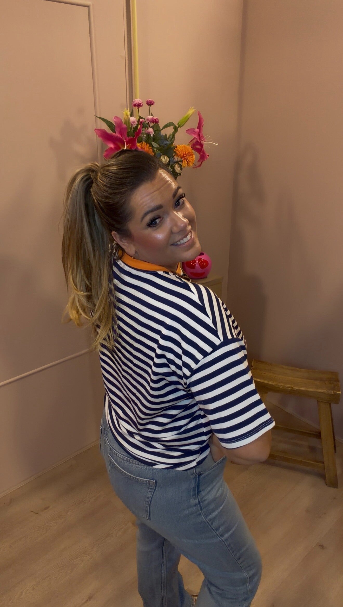 Dit heerlijke springt-shirtje met de welbekende streepjesprint die het afgelopen seizoen het erg goed deed, gaan we gewoon mee door, alleen nu met een kort mouwtje.